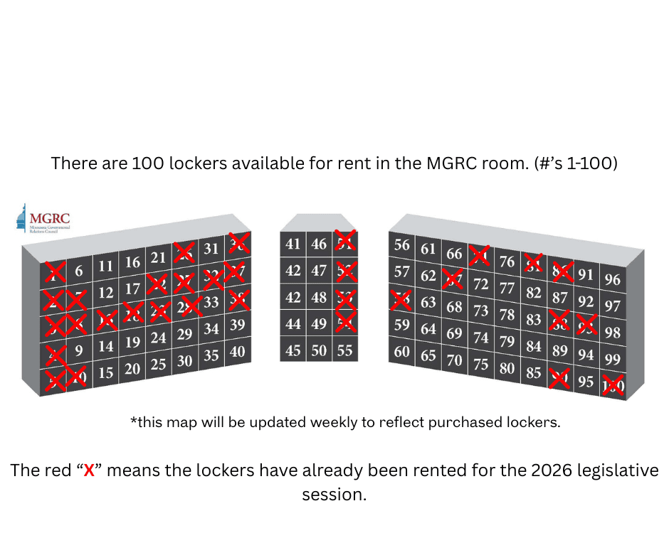 Locker rental sales for the 2026 Legislative Session are now available! For members who will be on-site during the session, we want to provide you the opportunity to store your items safely and securely in our member room.